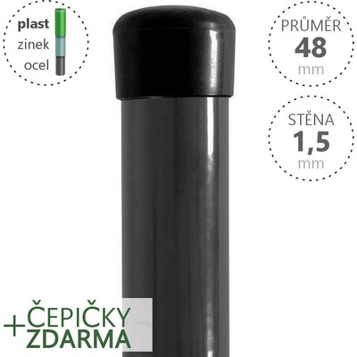 Plotový sloupek Damiplast, barva RAL 7040 (šedá), povrchová úprava Zn + PVC, průměr 48 mm, síla stěny 1,5 mm / s poplastem 2,0 mm, včetně čepičky. Výška dle...