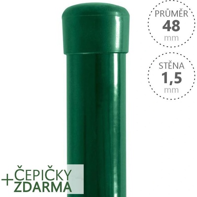 Sloupek dodáváme s čepičkou Sloupek s čepičkou. Průmer sloupku: 38mm. Tloušťka stěny: 1,25mm. Výška: 2200m. Povrchová úprava: Zn + RAL6005 zelená.
