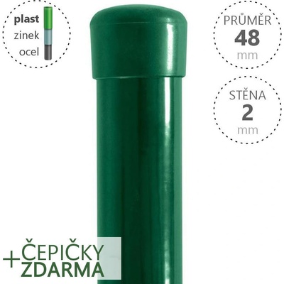 Plotový sloupek Damiplast, barva RAL 6005 (zelená), povrchová úprava Zn + PVC, průměr 48 mm, síla stěny 2,0 mm, včetně čepičky. Výška dle výběru. Technické parametry -...