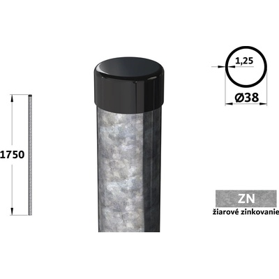 Pro výšku plotu cca 115 cm, celková délka 175 cm, průměr kruhového profilu 38 mm, včetně horního víčka. Žárově pozinkovaný.