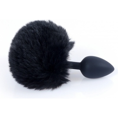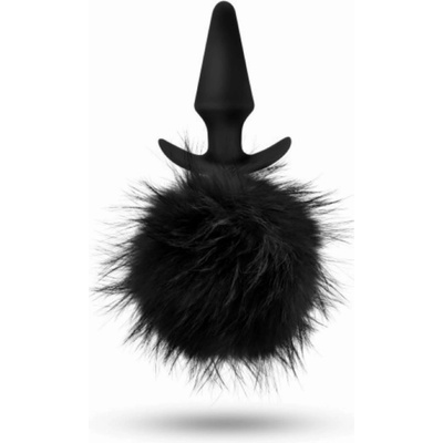 Anální kolík s měkkým načechraným králičím ocáskem v černé barvě. Silikonový kolíček se zúženou špičkou a základnou ve tvaru kotvy.