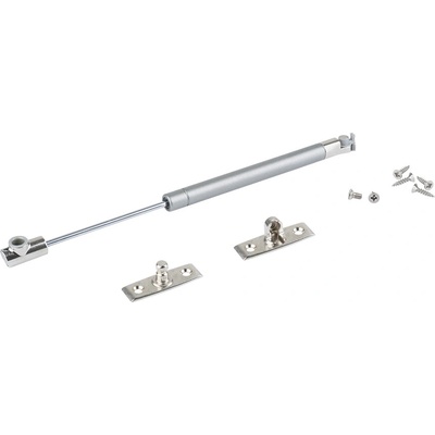 Vzpěra plynová stříbrná plynová výklopná vzpěra barva: stříbrná pro ovládání dvířek, vík, oken a jiných pohyblivých elementů použití v nábytkářském průmyslu rozteč otvorů pro montáž (stlačená vzpěra): 155 mm roztěč otvorů pro montáž (otevřená vzpěra): 245 mm Součástí...