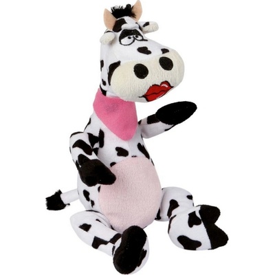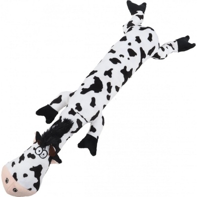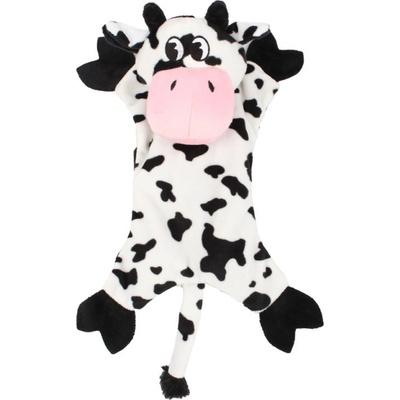 Plyšová hračka pro psy - kráva. Má měkce vyplněnou hlavu s vyšívaným obličejem. Tělíčko není vyplněné pouze obsahuje šustící materiál, stejně jako široký a dlouhý ocas. Šustivý...