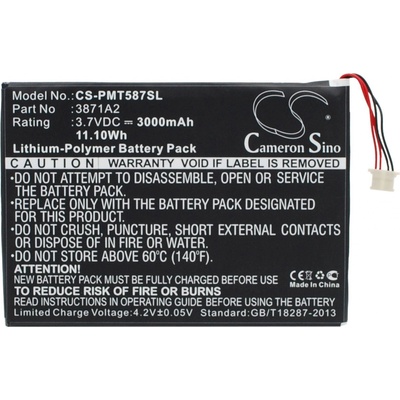 Baterie Cameron Sino CS-PMT587SL EAN: 4894128097730 Napětí: 3.70 V Typ: Li-Polymer Kapacita: 3000 mAh Energie: 11.10 Wh Výška: 104 mm Šířka: 72 mm Hloubka: 4 mm Hmotnost bez...