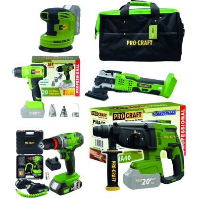 Procraft aku sada nářadí 20V, 6 dílů, 2× baterie 2.0Ah s nabíječkou Komplexní sada aku nářadí Procraft obsahuje šest kvalitních a všestranných strojů, dvě baterie 20V 2Ah a...