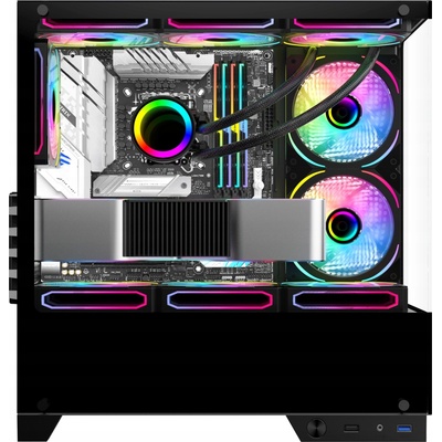 Skříň elegantnímu černému designu, ideální pro herní počítač. S podporou ARGB osvětlení na předním a bočnímu panelu z tvrzeného skla.; Použití: Skříň pro desky ATX, micro-ATX,...