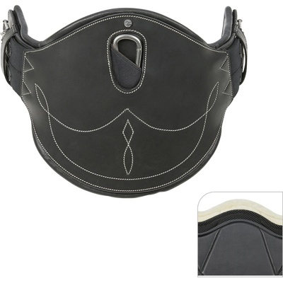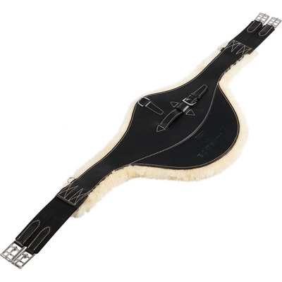 Anatomicky tvarovaný kožený podbřišník pro skoková sedla podšitý ovčí kůží. Specifikace produktu: Nerezové přezky na kolečkách, kožešinová podšívka se suchým zipem, pod...