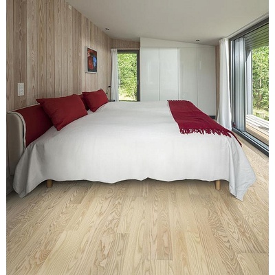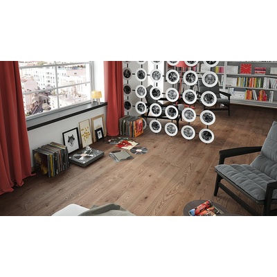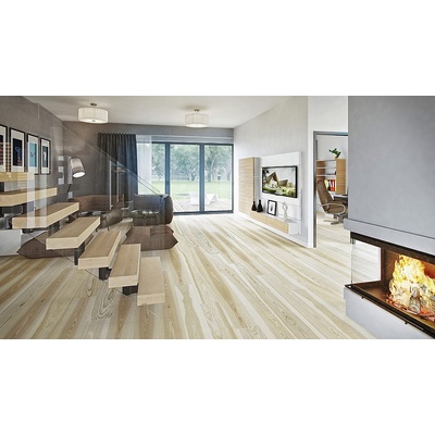 Dřevěná podlaha v dekoru jasan přírodní ve vzoru rybí kost je tvořena třemi vrstvami – vrchní vrstvou z jasanu a střední a spodní vrstvou z borovice, což zajišťuje pevnost,...