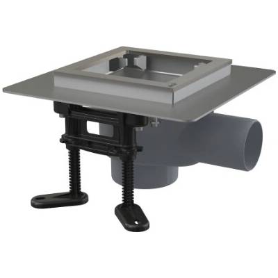 Podlahová vpust DN40/50 s vodorovným odtokem, pevným izolačním límcem, sifonovou vložkou, s plastovým výškově stavitelným nástavcem 12 - 70mm, s rámečkem 123 x 123mm a mřížkou...