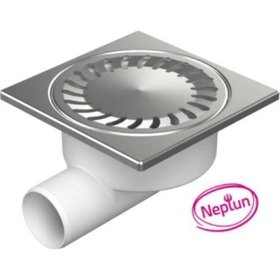 Podlahová vpusť 13,7 x 13,7 cm - boční DN50 ,se suchou klapkou sifon a vodní protizápachovou hladinou a nerezovou přírubou s 5 ks šrouby. Pro vnitřní i venkovní použití,...