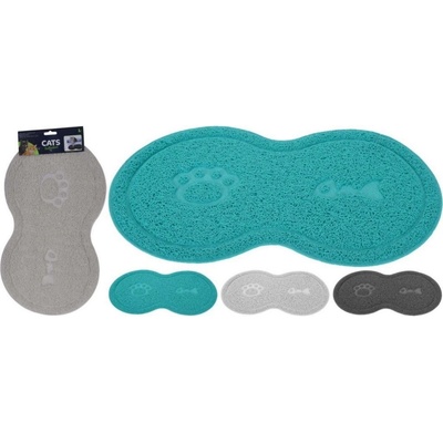 PVC podložka na krmení pro psy a kočky k umístění pod misky s vodou a krmivem pro domácí mazlíčky. Protiskluzový, voděodolný. Snadno se čistí tekoucí vodou. Rozměr 46 x 26 cm.