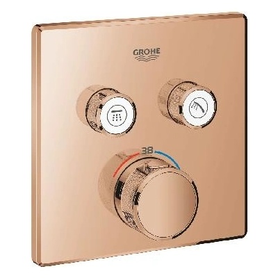 Termostat pro podomítkovou instalaci s 2 ventily - provedení: Warm Sunset - GROHE Long-Life povrch - GROHE FastFixation kovová krytá rozeta s těsněním, nastavitelná ± 6°...