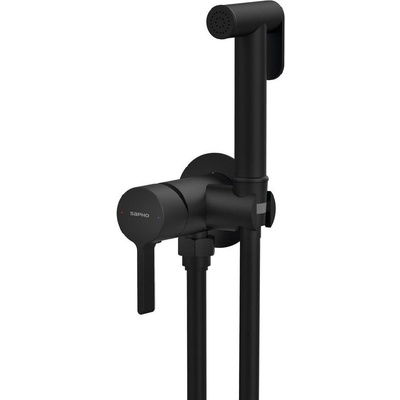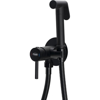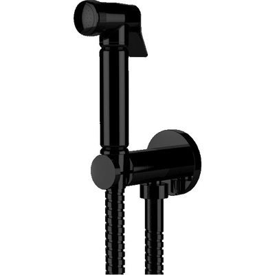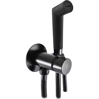 AQUALINE Podomítková bidetová baterie se Stop sprškou, hadice 1,2m, kulatá, černá mat (SK302B)