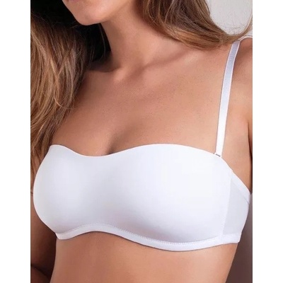 Příjemná a jemně vyztužená dámská podprsenka značky Cotonella bezkosticová. Korzetová podprsenka je zcela hladká, má širší střed a boční zpevňující pružné kostice. Podprsenka...