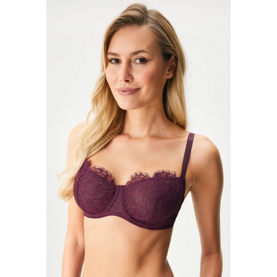 Krajková podprsenka Wine Whisper Bardot dopřeje pohodlí i větším prsům. Nevyztužené košíčky s kosticemi respektují jejich tvar, ale zároveň je nadzvednou do plného a kulatého...