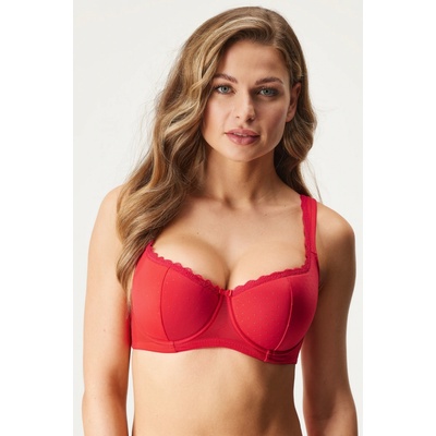 Pohodlná podprsenka Bibiana Italy zaujme výraznou krajkou v oblasti košíčků i boků. Všité kostice a měkce vyztužené košíčky poskytnou dostatečnou oporu. Střih bardot...