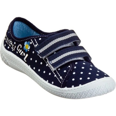 Plátěné, tmavě modré, dívčí tenisky do interiéru mají plátěný vzdušný svršek, lehkou, pružnou podešev, zpevněnou patu i dostatečně širokou špičku pro volný pohyb prstů nohou....