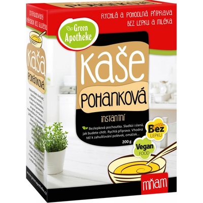Pohanková kaše instantní 200 g je přirozeně bezlepková potravina s významným obsahem vitamínů a prospěšných látek pro lidský organismus. Používá se k přípravě kaší vmícháním do horkého mléka nebo vody, nemusí se vařit. Je také vhodná k obalování, k zahušťování pokrmů...