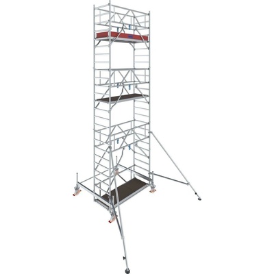 Alu pojízdné lešení PROTEC; výška lešení 8,45 m; pracovní výška 9,3 m; výškově nastavitelná kola; 203 kg