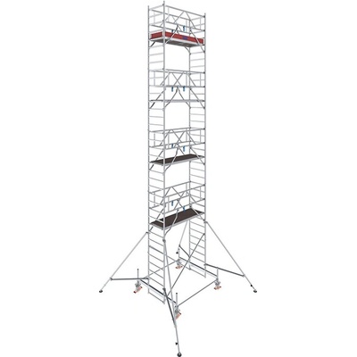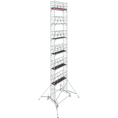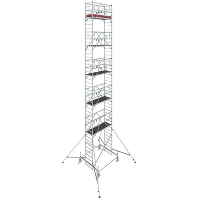 Alu pojízdné lešení PROTEC; výška lešení 11,45 m; pracovní výška 12,3 m; výškově nastavitelná kola; 245 kg