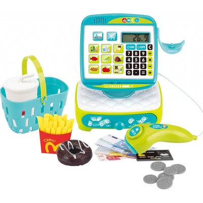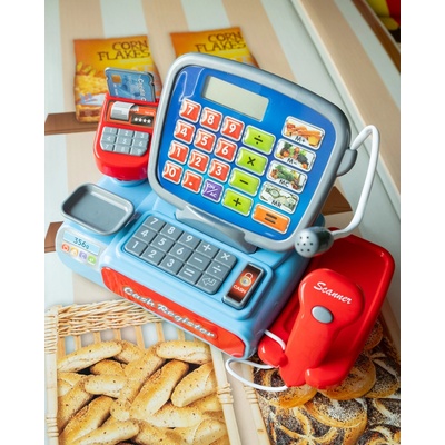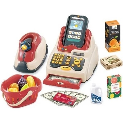 Elektronická pokladna má funkční skener, který po stisknutí vydává zvuky a svítí. Pokladna slouží také jako kalkulačka, můžete přidávat ceny produktů a naučit se počítat....