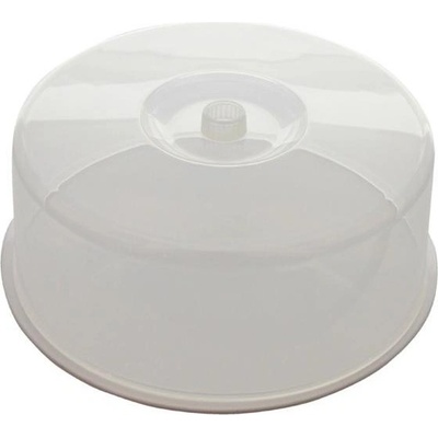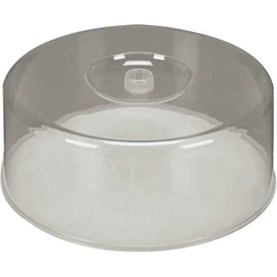 Kryt je průhledný s mléčným zbarvením. Průměr 300 mm, výška 120 mm. Materiál: polyetylen, odolný proti rozbití.