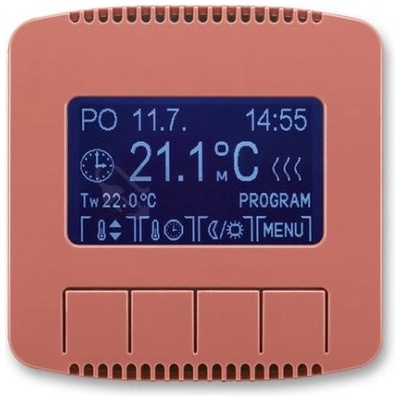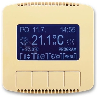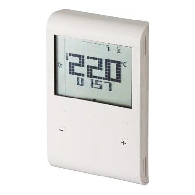 Elektronický prostorový termostat, bez časového programu, dotyková kapacitní tlačítka, rozsah nastavení žádané teploty 5 až 35 °C. Napájení 230 V AC, přepínací kontakty 24 až...