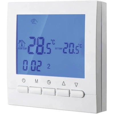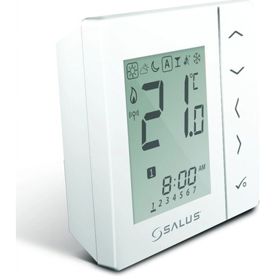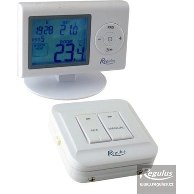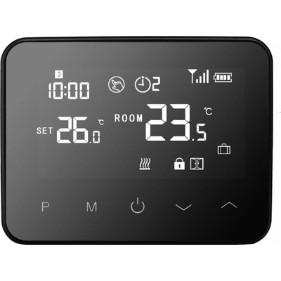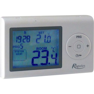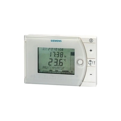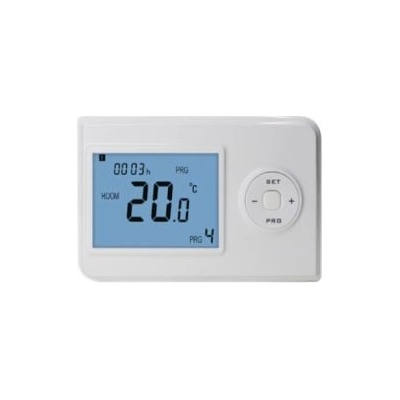Programovatelný bezdrátový elektronický pokojový termostat s LCD displejem. Umožňuje řídit provoz vytápění nebo chlazení, nastavit pro každý den v týdnu šest různých teplot...