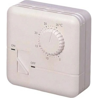 Pokojový prostorový termostat TH-555. Jednoduchý analogový termostat 5–30°C s vypínačem ON-OFF určen pro kontrolu a regulaci vytápěcího systemu. Odporová zátěž 7A,induktivní...