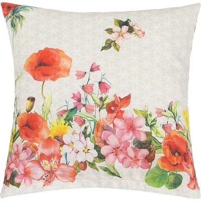 Dekorační polštářek s motivem sedmikrásky, žlutého motýlka a dalších květin na režné. Polštářek je z obou stran stejný. Povlak na polštářek je vyroben ze 100% bavlny a výplň je...