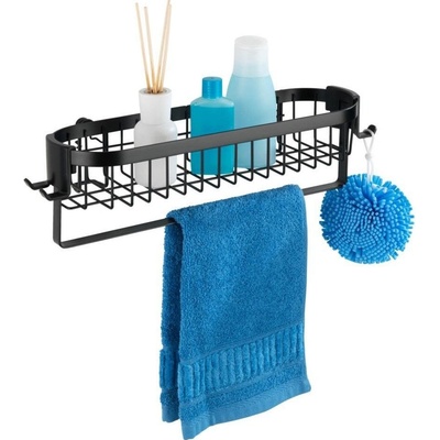 Závěsná police s háčky a věšák na ručníky Classic Plus, černá. Organizace ve sprše nebyla nikdy tak jednoduchá! Závěsná police s háčky a věšákem na ručníky Classic Plus je...
