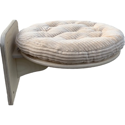 Dřevěná kulatá police pro kočky. Na zeď je připevněna pomocí držáku na zeď. Police je přizpůsobena k pevnému zavěšení na zeď. Polička je na zeď přichycena pomocí čtyř šroubů...