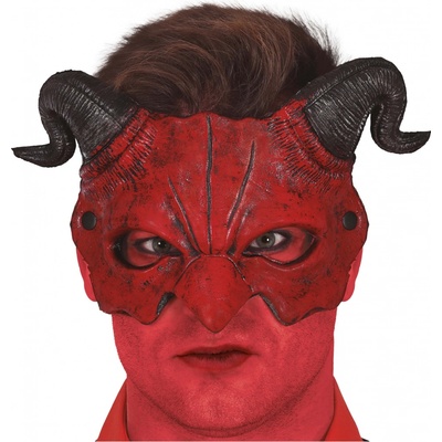 Čert ďábel polomaska maska ďábla s výrazným červeným designem a černými rohy, která je ideální pro kostýmy na Mikuláše, Halloween nebo jiné tematické večírky. Maska pokrývá...