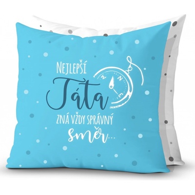 Dárkový polštář s věnováním „nejlepší táta zná vždy správný směr“. Polštářek je z jedné strany barevný s nápisem, druhá strana je bílá. Polštář je možné prát v pračce....