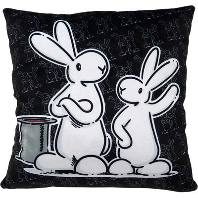 Měkoučký černobílý polštářek s kontrastním motivem králiků z klobouku Boba a Bobka. Vhodný do postýlky, na cesty i jako dekorace do dětského pokojíčku. Materiál mikrovelur,...