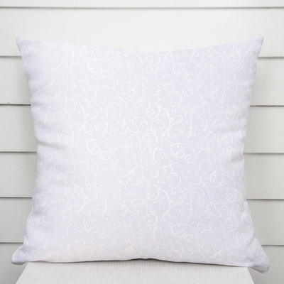 Dekorační povlak na polštář s vytkaným vzorem ornamentů v studené bílé barvě s jemným nádechem do fialova, ušitý ze 100% polyesterové látky s vodoodpudivou a nešpinovou...