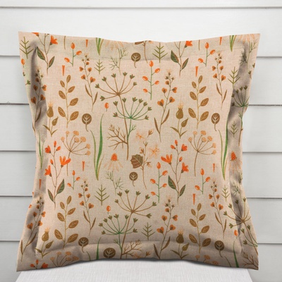 Dekorační povlak na polštář s ozdobným lemem, se vzorem podzimních rostlin na světle hnědém podkladu. Je ušitý z kvalitní a pevné dekorační látky s digitálním tiskem, se...