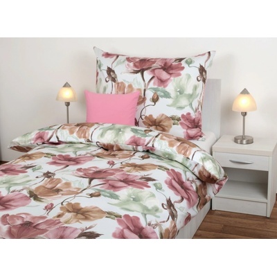 Luxusní povlečení z bavlněného saténu - růžovo-béžový květ Polštář 50x80