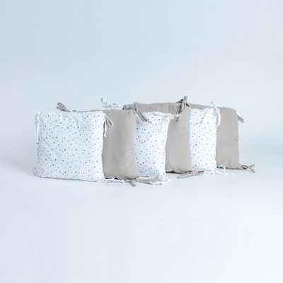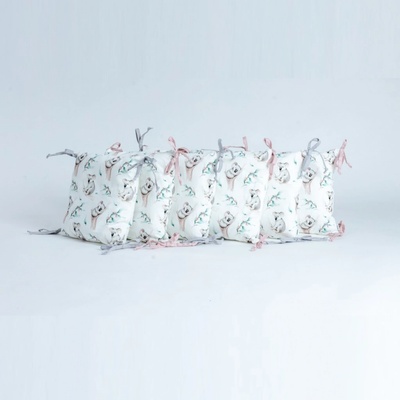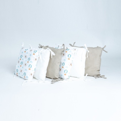 Polštářkový ochraný lem- mantinel do postýlky se skládá ze 6 samostatně zavazovacích polštářků 33x33 cm, které jsou vyrobeny z potištěného 100% bavlna plátna, vyplňené jsou...