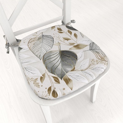 Oblý podsedák se vzorem šedých a hnědobéžových listů na režném podkladu. Potah je ušitý z kvalitní a pevné španělské dekorační látky Leona z 55% bavlny a 45% polyesteru o...