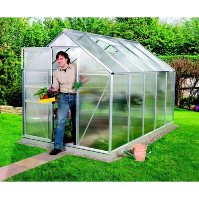 Prémiový hliníkový skleník včetně ocelové základny; plocha 7,8 m2; d-š-v 310/254/211 cm; posuvné dveře; 2x větrací okénko; pevná hliníková konstrukce; jednoduchá montáž