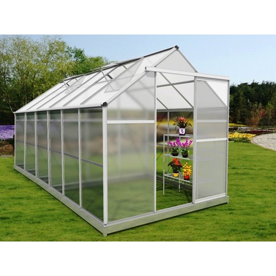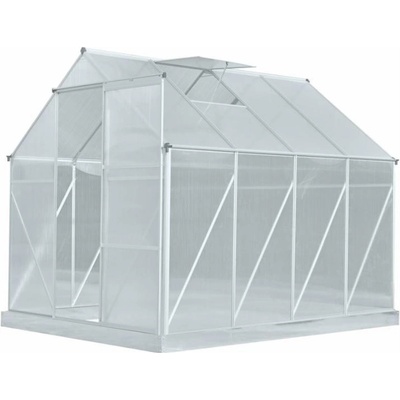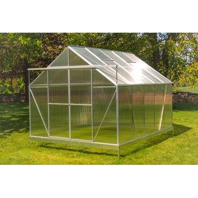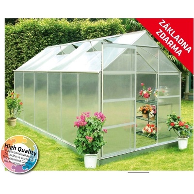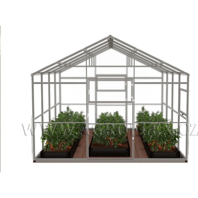 Prémiový hliníkový skleník včetně ocelové základny; plocha 7,8 m2; d-š-v 310/254/211 cm; posuvné dveře; 2x větrací okénko; pevná hliníková konstrukce; jednoduchá montáž