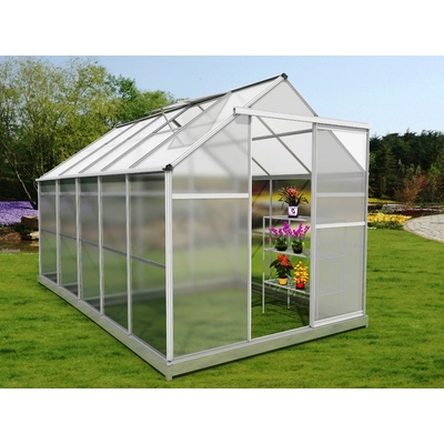 Hliníkový skleník VeGA 6000 STRONG-22 Zesílená hliníková konstrukce 2x střešní okno 1x posuvné dveře Dvoustěnný komůrkový polykarbonát 4mm s UV filterm Zesílený...