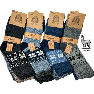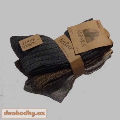Vlněné pánskéalpakové pletené zimní ponožky, výška nad kotník, vhodné i do vyšší kotníkové obuvy Složení :85% alpaková vlna, 10% bavlna , 5% polyester praní na 30 stupňů. 5...