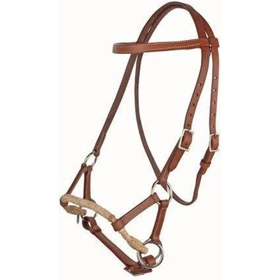 Sidepull vyrobený z vysoce kvalitní kůže. Vybavený nánosníkem ze surové kůže. Opatřen kováním ve stříbrné barvě. Dodávaný bez otěží. V tmavě hnědé barvě a velikostech Pony, Cob...