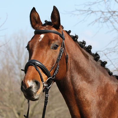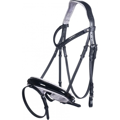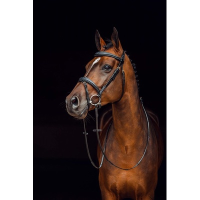 Vysoce kvalitní uzdečka s hannoverským nánosníkem vyrobená z hovězí kůže. Opatřena kováním ve stříbrné barvě. Nánosník, nátylník a čelenka měkce polstrované. Čelenka zdobena...