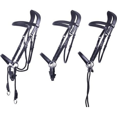 Multifunkční kožená bezudidlová uzdečka značky QHP. Kvalitní nerezové přezky. Možnost použití jako sidepull, chin crossed nebo jaw crossed. Anatomicky tvarovaný a polstrovaný...