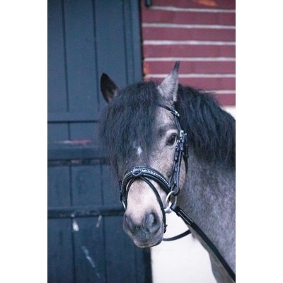 Vysoce kvalitní kožená uzdečka pro shetty a malé poníky. Má kontrastní bílé prošívání a kombinovaný nánosník a kulatou čelenku, které jsou zdobené lakovanou kůží. Nátylník je...
