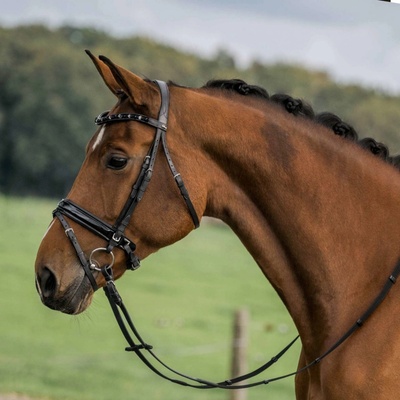 Uzdečka Schockemöhle Bremen A.K.N. s anglickým nánosníkem je elegantní a funkční uzdečka, která se vyznačuje precizním zpracováním. Vyrobena z kvalitní kůže, zajišťuje dlouhou...