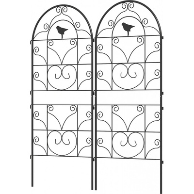 Kovová sada 2 nerezových podpěr pro popínavé rostliny 50 x 120 cm | černé Proměňte svou zahradu v kouzelnou oázu pomocí mřížky na růže. Dvě mříže na růže zdobené jemnými ptačími...